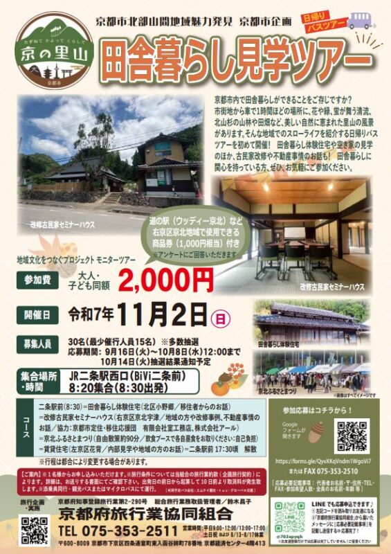 この度、田舎暮らし体験住宅や空き家の見学、古民家改修事例や現地不動産事情に関するレクチャーなど、北部山間地域でのスローライフを紹介する日帰りバスツアーを初めて開催します。