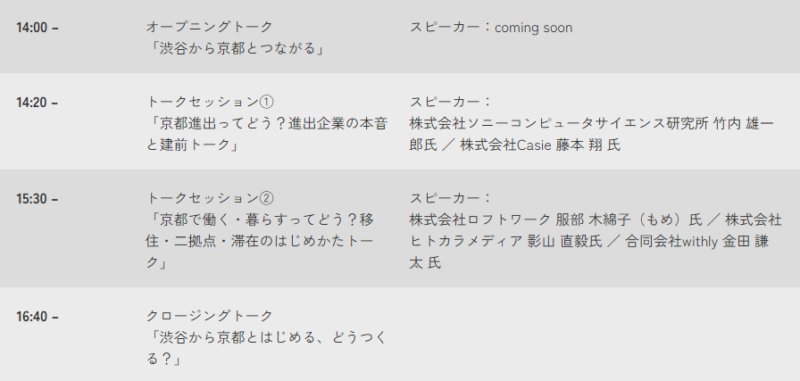 東京から京都に拠点を広げた企業、京都へ移住したビジネスパーソンやクリエイターが登壇。