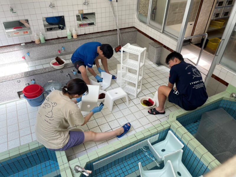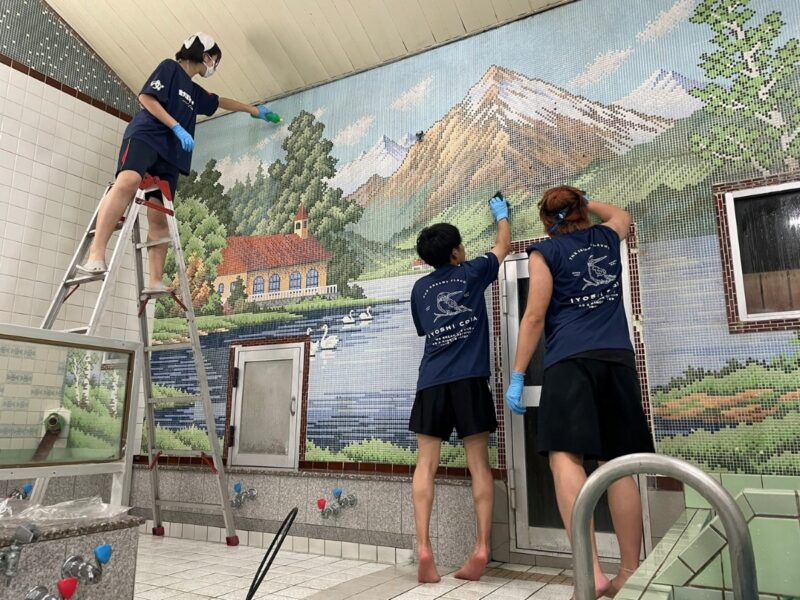 写真提供:大黒湯 再開後の定休日には、スタッフや学生たちが浴場の清掃や点検を行い、大黒湯の日々を支え続けている